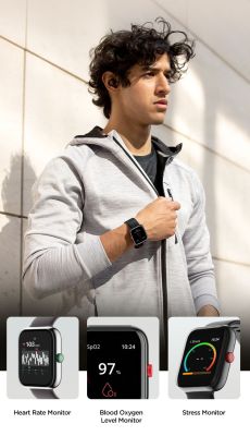 Keep a tab on your heart rate and blood oxygen on-the-go with its heart-rate and SpO2 monitor. Stress monitoring helps keep a track of your stress levels.