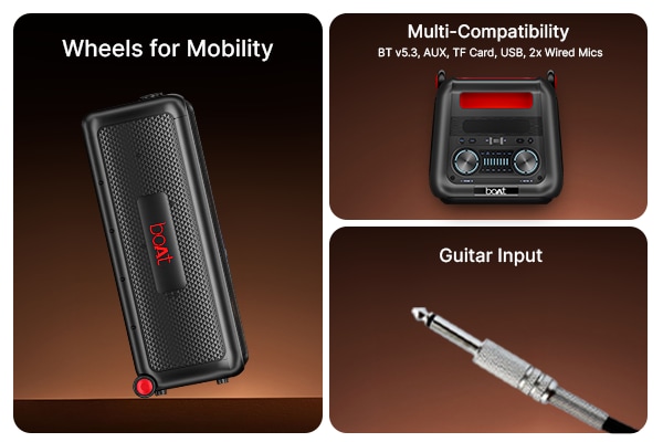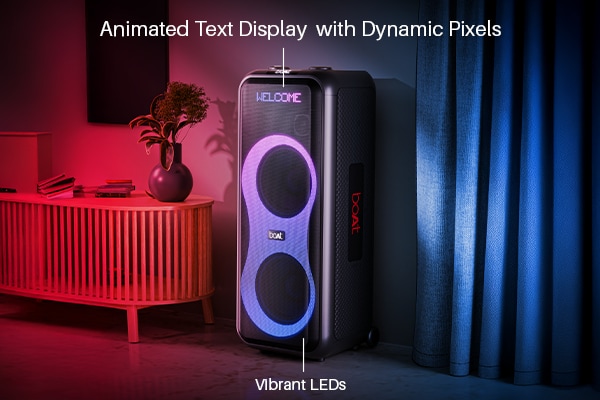 | Key Features | 220 Watt boAt Signature Sound Dynamic Pixels with Animated Text Display Up to 7 hours of Playtime Wireless Microphone TWS for Double Impact |