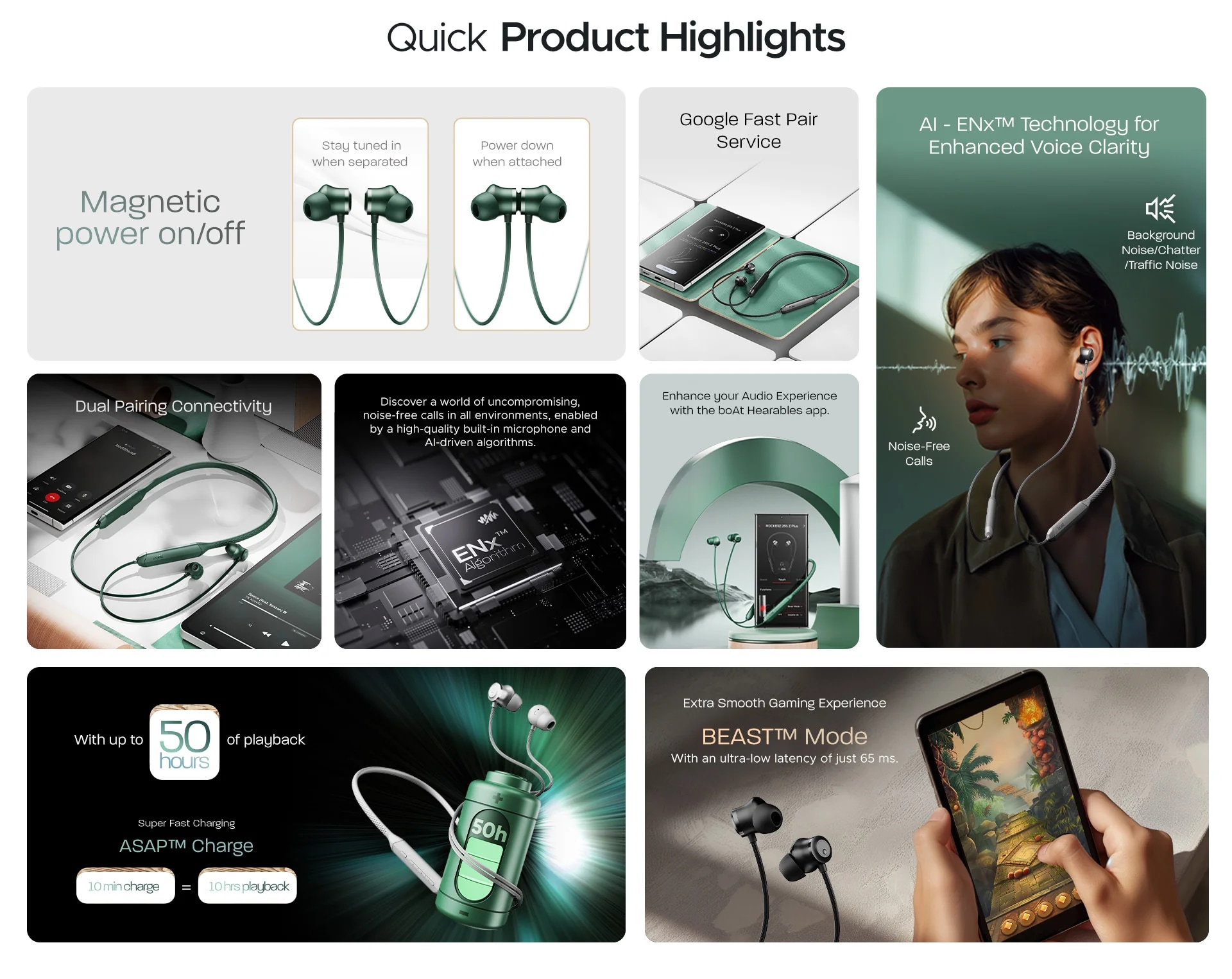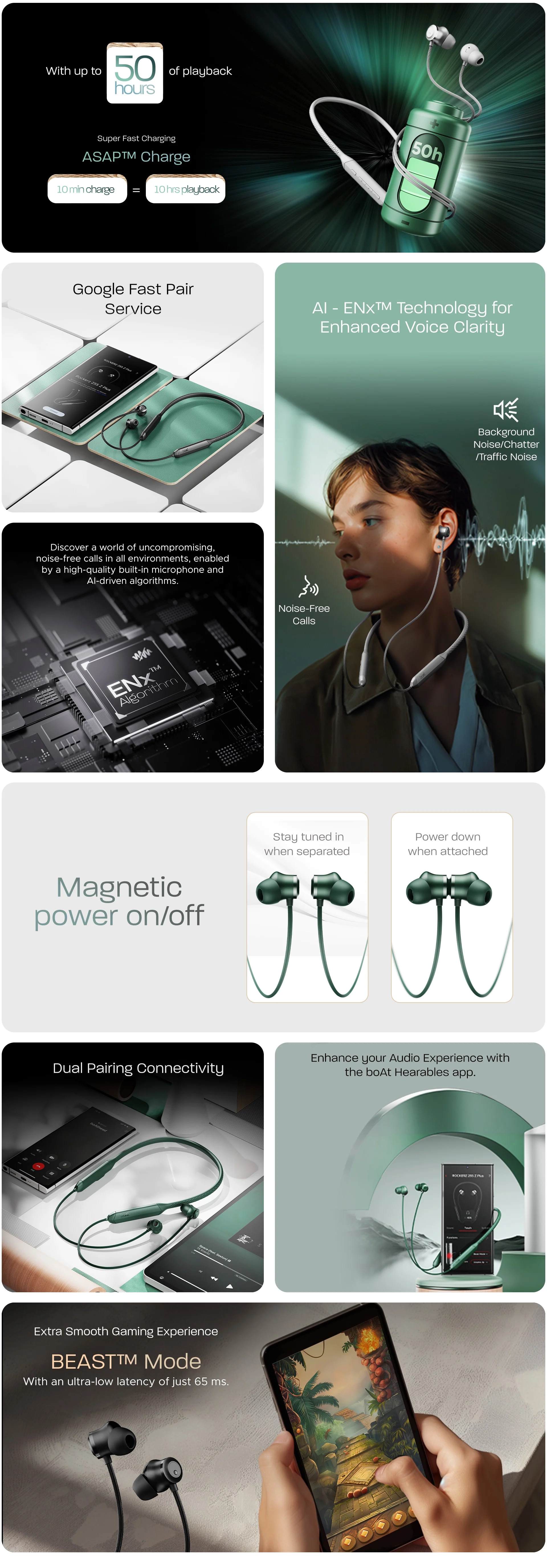 | Key Features | 50 hrs Playtime Beast Mode with 65 ms Low Latency Dual Pairing ASAP Charge 10 mm drivers IPX4 Bluetooth v5.3 |
