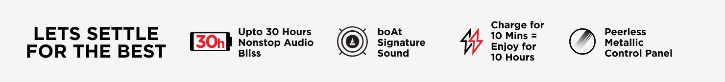| Key Features | 10 mm Drivers 30 Hours Nonstop Audio Bliss ASAP Fast Charge Active Voice Assistant Peerless Metallic Control Panel IPX5 Water & Sweat Resistant |