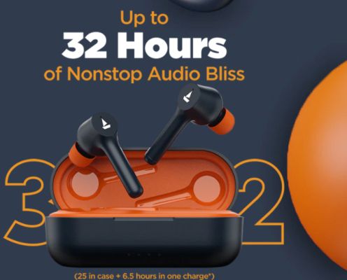 | Key Features | 32 hours Playback Time 5 min Charge gives 60 min Playback 4 mics for Maximum Clarity ENx Technology |