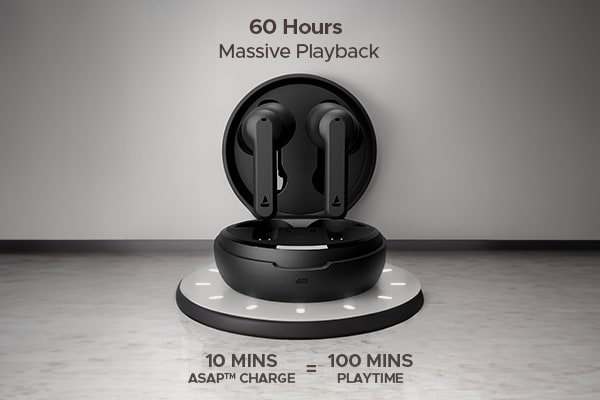 - ASAP Charging: Once you charge your phone for just 10 minutes, you can catch up on your unwinding session in no time. boAt’s ASAP Charging gives you around 100 hours of additional playback so you can watch all the latest content right away.