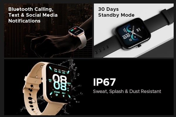 | Key Features | 4.7 cm (1.85 inches) HD Display Advanced Bluetooth Calling 240 x 285 pixels HD Resolution Cloud & Custom Watch Faces 50+ Sports Modes Heart Rate & Blood Oxygen Monitoring 30 Days Standby Mode IP67 Waterproof |