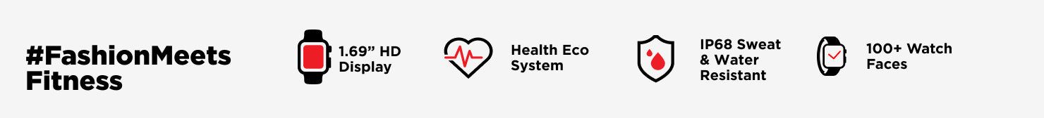 | Key Features | 4.29 cm (1.69 Inch) Colour HD Display Equipped With A Fast Charging Chip 100+ Custom Indian Watch Faces IP68 Water Resistance 7-Day Battery Back-Up |