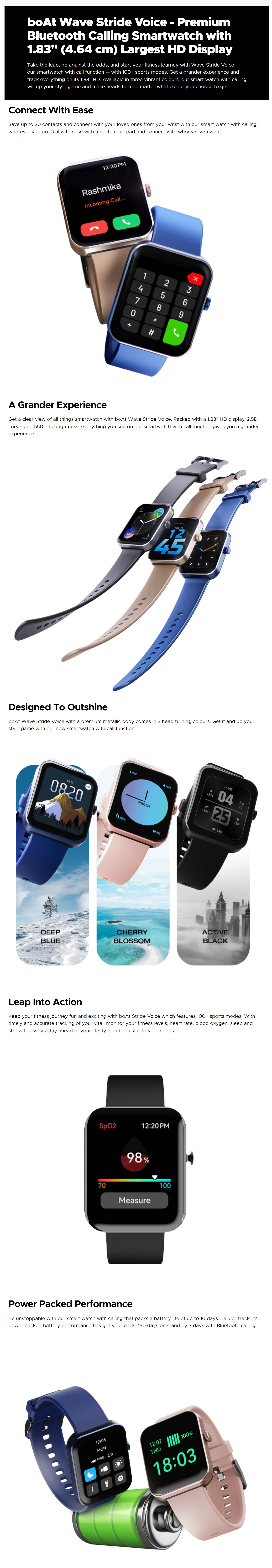 | In The Box | boAt Wave Stride Voice Active Black, Charging Cable, Warranty Card, User manual |