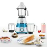 - 750W Mixer Grinder: Powerful motor, 3 jars (400ml, 1L, 1.5L), durable copper motor, 20,000 RPM, 30 min continuous operation, rubber lid rings, flow breakers, anti-skid feet, 1.5M cord, fire protected switches, overload protector.
