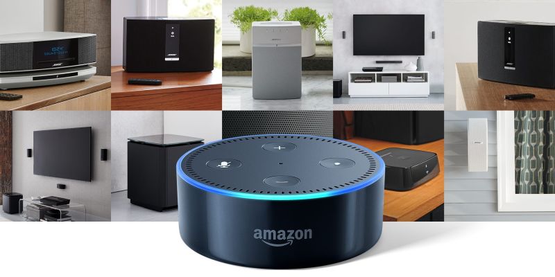 Enjoy hands-free voice access to your music on SoundTouch speakers using any Alexa-enabled device-like the Amazon Echo Dot. Just open the Alexa app. Search for "Bose" under the Skills menu. Then follow the simple one-time setup.