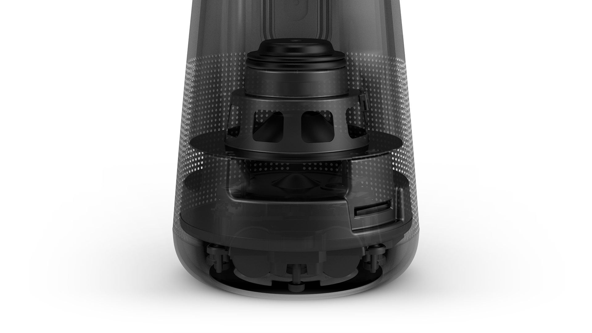 This true 360 degree speaker was engineered to spread deep, jaw-dropping sound in every direction. That means, when everyone stands around it, everyone gets the same experience. If you set it near a wall, sound will radiate and reflect around the room, immersing you in that same feeling you felt at your favourite concert. And with a flexible handle, it's designed to go wherever you want to bring the music.
