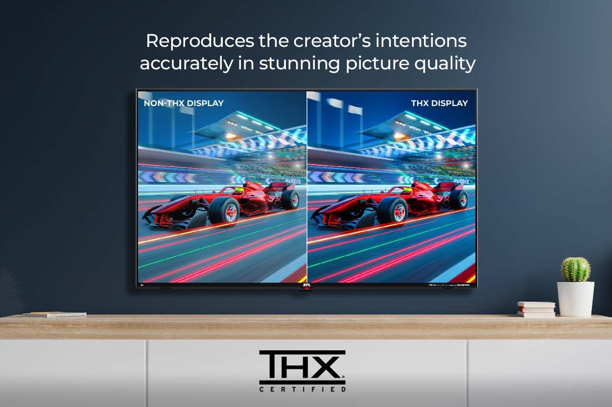 THX Certified for a true cinematic experience — with enhanced pixel accuracy (50%), colour precision (40%), 95% greyscale accuracy, 30% better contrast, and 75% smoother motion for picture-perfect viewing every time.