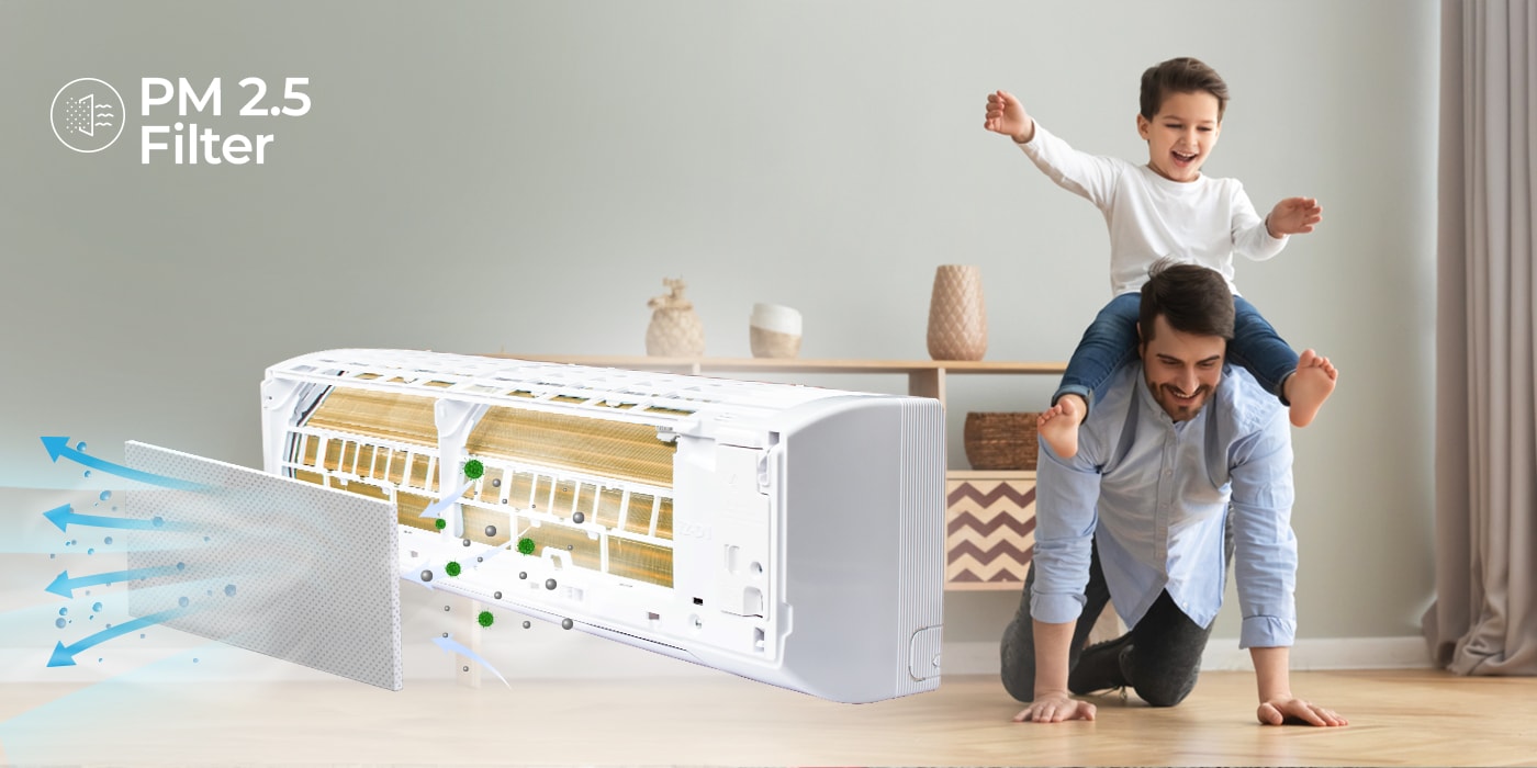 | Key Features | Aluminum fin Coating (Eva + Cond) Anti Corrosive Coating (Evaporator + Condenser) AI Room Temperature Display Remote Lock I Feel I Clean Anti Mild Dew Display On/Off Clean Reminder Self Diagnosis Auto Restart Protection Memory Function High Density Filter with Antiviral Coating PM 2.5 Filter IGT Copper Tubes 100% Copper |