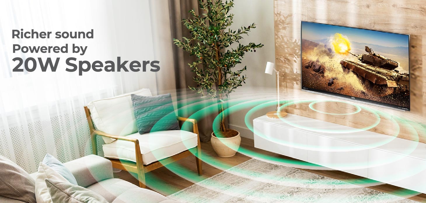 Enjoy rich and dynamic audio with powerful 20W speakers. Choose from five sound modes: Standard, Stadium, Movie, Music, and User—to elevate your overall viewing experience.