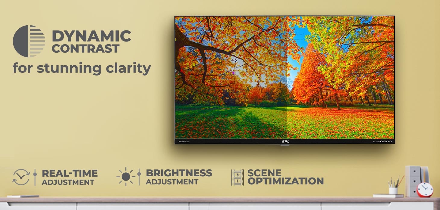 Dynamic Contrast enhances image depth by adjusting brightness in real-time, making dark scenes darker and bright scenes brighter. This delivers balanced visuals with richer details and sharper contrast for an immersive viewing experience.