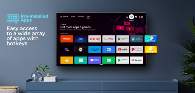 The TV comes with a list of pre-installed applications such as Amazon Prime Video, YouTube, Sony Liv etc. along with all the popular apps. Which can be easily accessed through hotkeys.