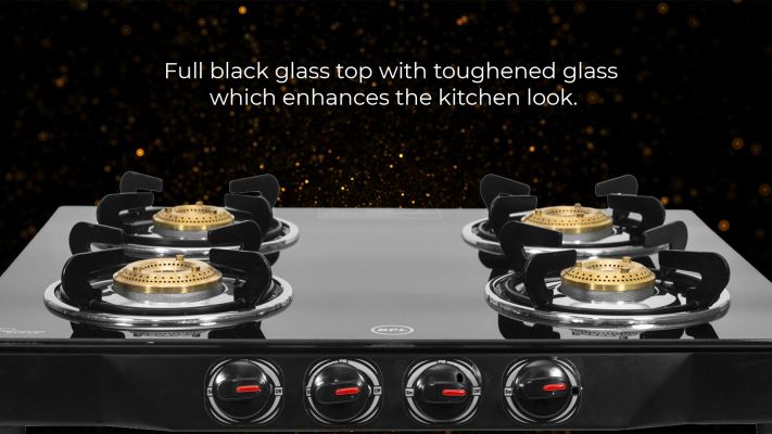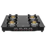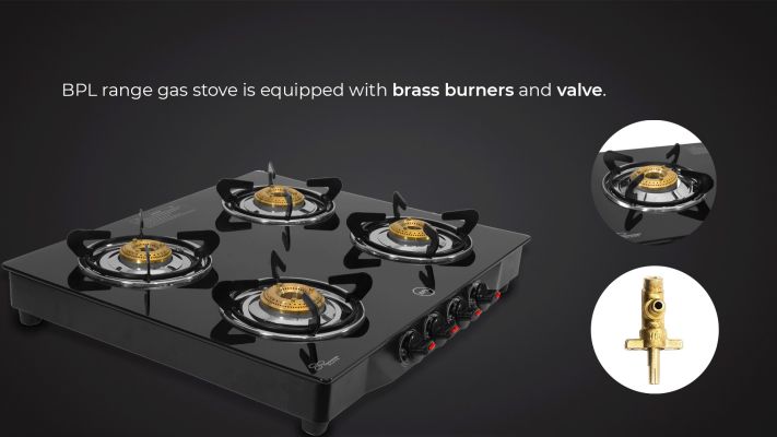 Device Protection Plan AddedBPL Glass Top 4-Burner Gas Stove with Toughened Glass Top, Brass Burner & Valve, Nylon Base Knobs, 2 Years Warranty