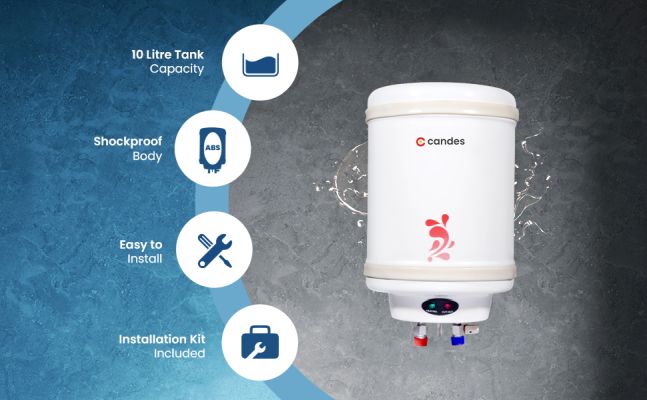 Device Protection Plan AddedCandes Perfecto, 10 litres, 2000 Watts, Storage Water Geyser, 5 Star Rating, Ivory