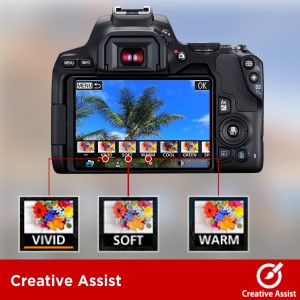 The Creative Assist feature makes it easy even for beginners to change the look of their photos. Select the effect that you want, choose how much effect you want to apply, and the camera will choose the correct settings. It works in real-time, which means that you can check details like the degree of background blur (bokeh), brightness and color vividness on the rear LCD monitor before you press the shutter button.