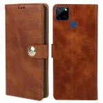 Fastship Realme C12 Flip Cover | Full Body Protection | Inside Pockets & Stand | Wallet Stylish Button Magnetic Closure Book Cover Leather Flip Case for Realme C12 - Executive Brown