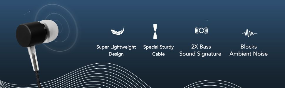 | Key Features | 2x Bass sound signature Toggle volume control Block ambient noise Super lightweight design Special sturdy cable In-line mic with remote |