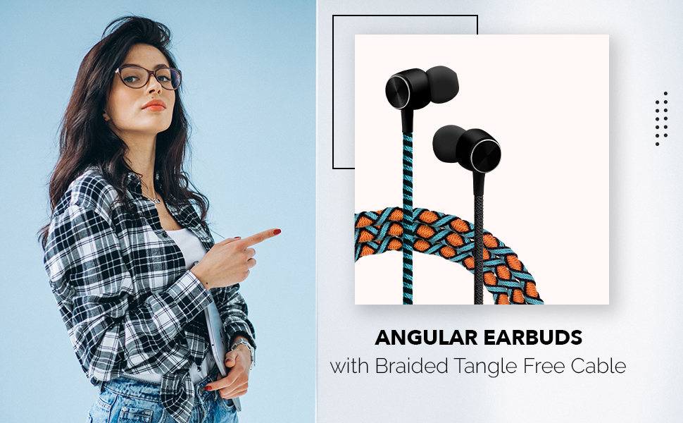 Enjoy the bliss of a durable tangle-free durable braided cable with angular earbuds that are designed to keep your music mess-free before you lose yourself into the tune.