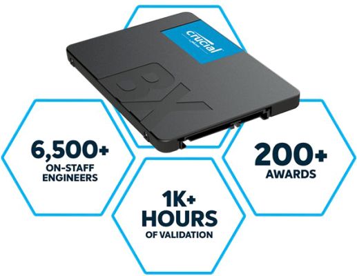 With thousands of hours of Micron pre-release validation, dozens of SSD qualification tests, and a heritage of award-winning SSDs, the Crucial BX500 has been thoroughly tried, tested, and proven.