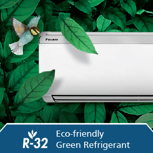 R32 (Green Refrigerant) has zero Ozone Depletion Potential (ODP) and Modified Global Warming Potential (GWP) of 472, compared to R410A’s Modified GWP of 2,027. Also R32 is a single component refrigerant, which makes it easy to recycle. It is because of these reasons that R32 offers the lowest total emissions and best overall life cycle climate performance.