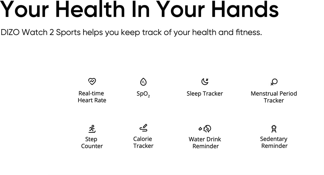 - Real time heart rate, SpO2, Sleep Tracker, Menstrual Period