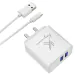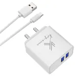 Dual Port USB Fast Wall Charger Adapter with fast charging Micro USB Cable (White, 2.4A)