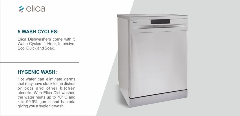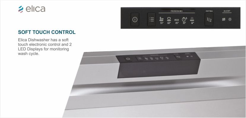Bring home the Elica 12 Place Dishwasher WQP12-7605V Stainless Steel and simplify the way you clean your dishes. With the multi programme, you can adjust the settings as per need. The dishwasher comes with soft touch electronic control and 2 LED displays. Also it comes with a 12 place settings capacity.