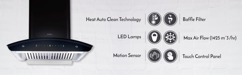 | Key Features | Touch control (1.5 Watts x 2) LED Lamp Motor watt -180 Watts Heat auto clean function Motion Sensor, Touch Control Panel Separate Oil Collector Heat Auto-clean Technology |