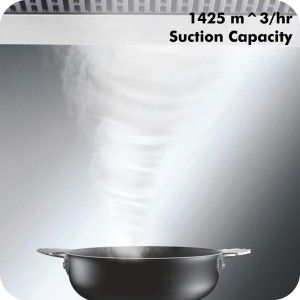 Thanks to the powerful suction capacity of 1425 cubic meters per hour (m3/hr), this chimney not only clears out cooking fumes from the kitchen area, but it also produces minimal noise while functioning and is energy-efficient too.