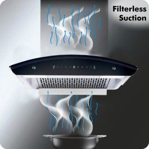 This chimney from Elica features a filterless suction technology and comes with a sealed motor. Thanks to the motor’s sealed design, oil deposits or water vapors will not affect its smooth functioning. Moreover, this chimney comes with a high-quality metal blower system that exhausts smoke and odors from the kitchen.