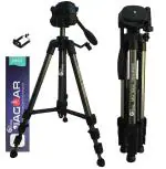 Eloies 57 lightweight tripod with carrying bagsize it upthis lightweight tripod with 14 screw plate fit most cameras or videos up to 1105 grms.Setup is quick and easy, included carrying case for storage and travel easy.The tripod legs can extend from 19 to 57, winner in height, it s handy when your on vacation and want to get the camera above the heads of others.Details-floded length- 19max.Height- 57load capacity- 2.3 - 5 kg.Weight- 1105 gram.Portable carrying bagbonus phone clip.Flips-locks systemthe flips-locks system makes it easier and faster to adjust the height, so you can extend or retract the tripod in seconds.Plate with universal 14 screwquick and easy for setting up the smartphone mount and cameras onto and off the tripod.Non-slip rubber feetnon-slip rubber feet ensure that the tripod stands firmly on all terrains, offers the best stability for your devices and helps to take stunning photos.Weight hookwith the weight hook at the bottom of the center column, you can hang extra weight for additional stability which is safer for taking pictures.