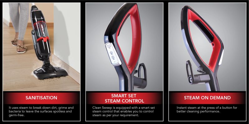 Device Protection Plan AddedEureka Forbes Clean sweep Vertical vacuum cleaner for Steam mopping and floor cleaning