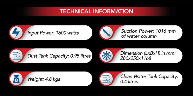 - Foam and pleated Filter to ensure trapping dust and dirt