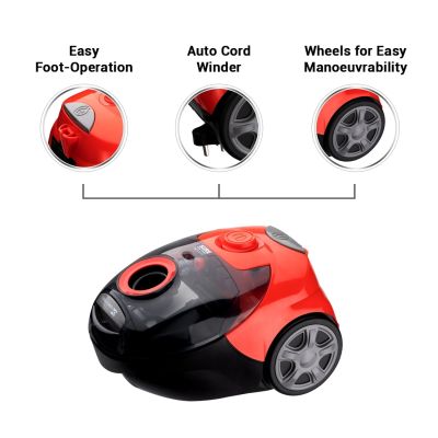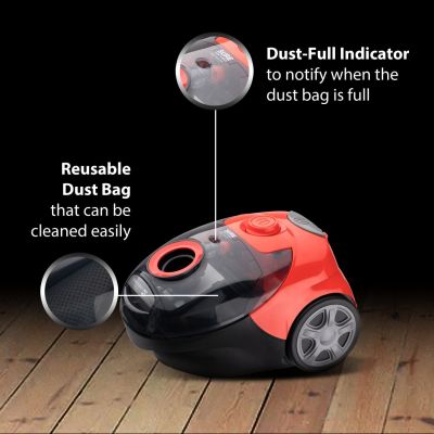 Device Protection Plan AddedEureka Forbes Sure Fast Clean Canister Vacuum Cleaner with 2 Litre Resuable Dust Bag, 1150 Watts, Black and Red
