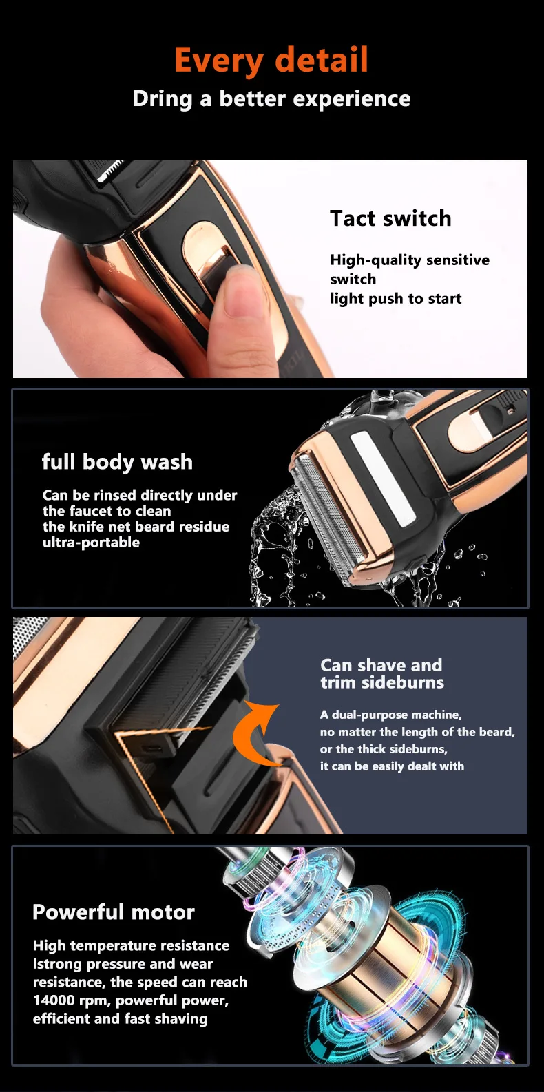 - Integrated quick-charge function, powerful lithium battery- 60 minutes shaving time