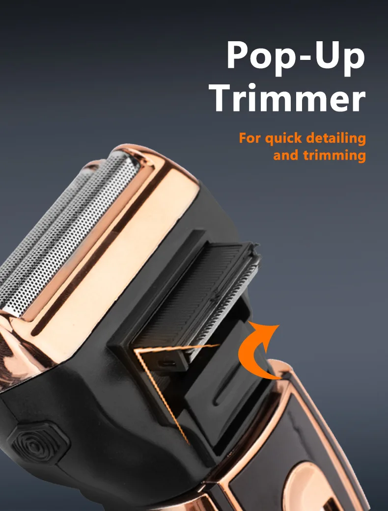 - High-quality triple-blade shaving system, with extendable detail trimmer