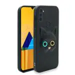 Fastship Coloured 3D POPUP BILLY Eye Effect Kitty Cat Eyes leather Rubber Back Cover for Samsung Galaxy M21 - Pitch Black