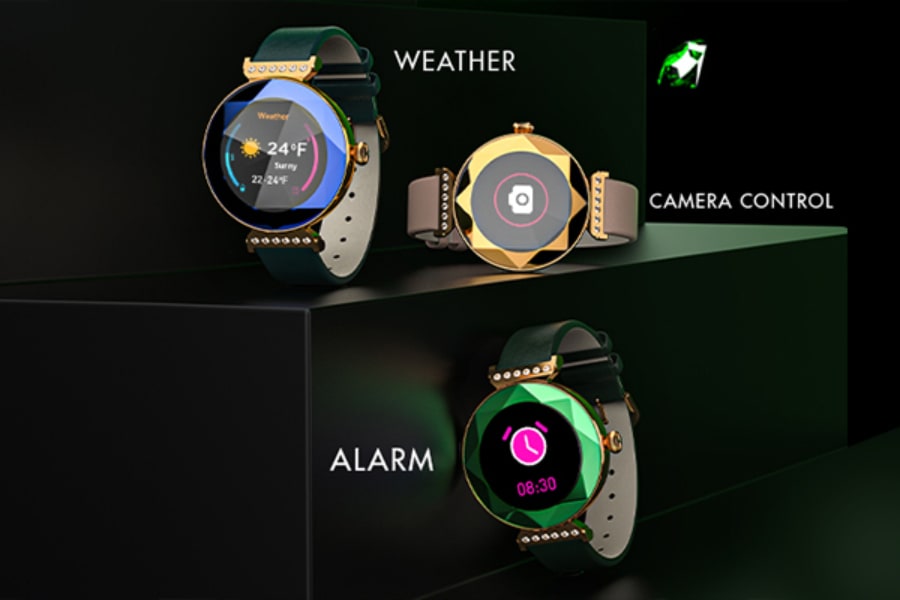 - Gemstone-studded case