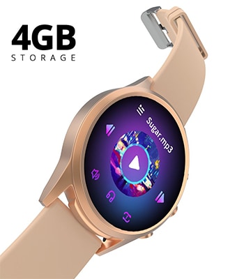 Infinity comes with a massive storage of 4GB memory that can store up to 300 songs. Now listen to your music wherever you go with the powerful speaker of Infinity Smartwatch.