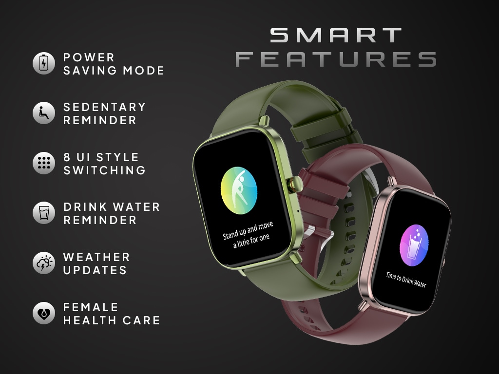 | Key Features | Unleash a world of possibilities with the 360 Health Smartwatch. Featuring a generous 5.10 cm (2.01 inch) display with a crisp 240 x 296 resolution Elevate Your Style, Express Your Mood With 8 UI styles at your fingertips Unmatched Fitness Versatility Uninterrupted Power, Limitless Adventures:Experience the freedom of low power consumption technology Stay Connected, Anywhere:Revolutionize the way you communicate with Bluetooth Calling Your Voice, Your Command:Meet your personal Voice Assistant 360 Health Monitoring, Your Wellbeing Priority |