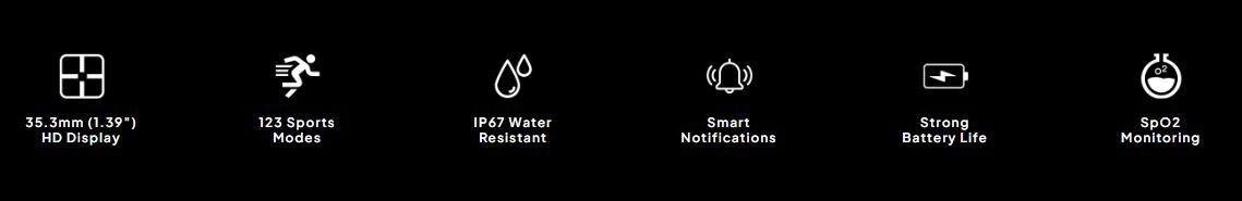 | Sensors | SpO2, Heart Rate Sensor, Accelerom, Barom, Altim |
