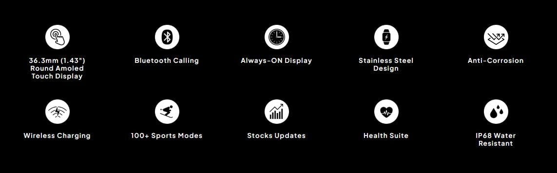 - 36.3mm (1.43 inch) Round Amoled Touch Display