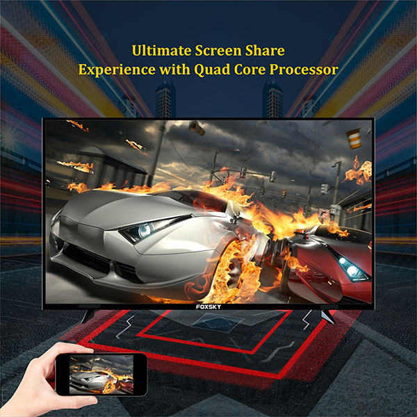 Cast photos, movies, TV shows, music and more - from android, iOS, Mac, Windows straight to your big screen TV. Just tap the cast button stream content to your Foxsky Smart LED TV.
