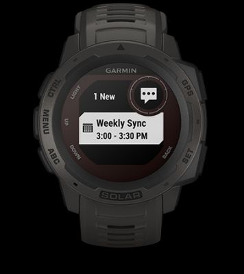 Pair Instinct with an inReach device (sold separately; active satellite subscription required) to view and send messages, get weather alerts on your wrist and trigger an SOS to the GEOS 24/7 emergency response team.