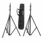 Perfect light stand for studio and on-site use universal mounting threads designed to fit most mono lights, strobes, continuous lights. With foot covering circle of diameter 81.2cm two foldable lights stands with bag weighs 4.7kg, easy to transport.