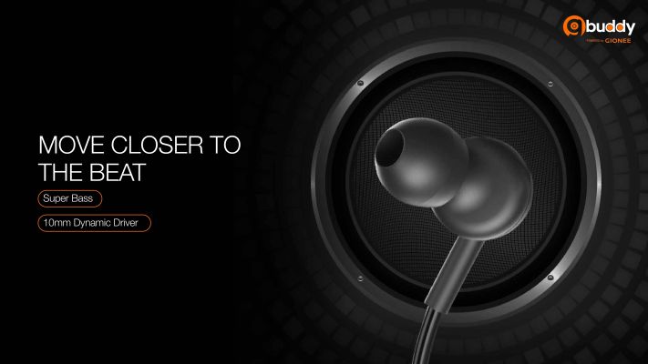Device Protection Plan AddedGionee Gbuddy Bliss 105 Wired Headphone with Tangle Free Cable, Light Weight, 10 mm Dynamic Driver, Ergonomic Design, Grey