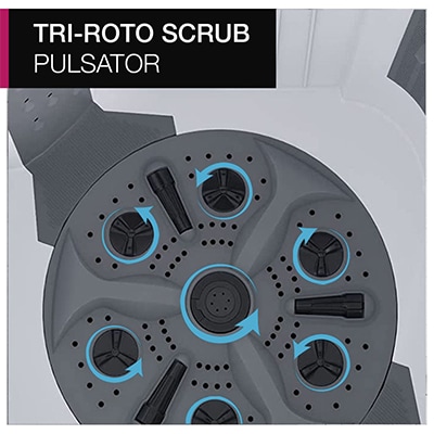 The Tri-Roto Scrub pulsator couples 3 ridges and 3 mini-pulsators to generate turbulence and scrubbing.