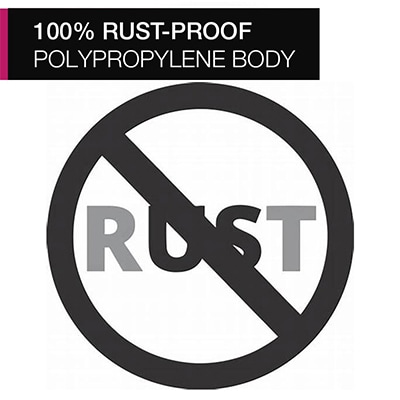 100 PERCENT RUST-PROOF POLYPROPYLENE BODY