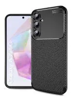 Golden Sand for Samsung Galaxy A35 5G Cover Drop Tested Shock Proof Slim Armor Aramid Carbon Fibre Rugged TPU Case for Samsung Galaxy A35 5G, Black